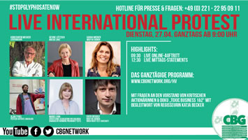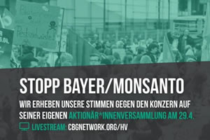 Aber die Liste der Kritiker ist umso länger. Gegen BAYERs-Konzernverbrechen wird es – wie schon seit mehr als 40 Jahren auf den Hauptversammlungen (HV) – auch dieses Jahr wieder ein internationales Protestprogramm geben, auch wenn der Konzernvorstand unter dem Deckmantel eines Pandemie-Notstandsgesetzes vom 30. März 2020 und einer „virtuellen HV“ die bisherigen Frage- und Antwortrechte der AktionärInnen kurzerhand abgeschafft hat, um kritische Stimmen abzuwürgen.“ Presseerklärung von Coordination gegen BAYER-Gefahren/CBG vom 20.04.2020 – #stopBayerMonsanto – Gemeinsam gegen Konzernverbrechen! Siehe die Aktionsseite BAYER HV 2020 bei CBG mit allen Terminen und Gegenanträgen und neu dazu: