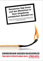 Europa versagt angesichts der Flüchtlingskrisen an seinen Grenzen. PRO ASYL zieht zum Weltflüchtlingstag am 20. Juni eine bedrückende Bilanz: Die EU-Staaten zeigen auch im vierten Jahr des syrischen Bürgerkriegs keine Bereitschaft, aktiv und gemeinsam Schutzsuchende aufzunehmen. Es existiert keine Solidarität bei der Rettung von Bootsflüchtlingen und bei der Aufnahme von Schutzsuchenden in der EU. Europa eröffnet keine legalen Wege für Schutzsuchende, um ihnen die lebensgefährlichen Bootspassagen zu ersparen. Im Zuge der italienischen Militäroperation „Mare Nostrum“ wurden allein in diesem Jahr knapp 60.000 Bootsflüchtlinge gerettet und nach Italien gebracht. Die fehlende europäische Solidarität wirft in Italien jedoch jeden Tag die Frage auf: Bis wann und in welchem Umfang soll die Seenotrettung beibehalten werden?…“ Presseerklärung vom 18.06.2014 und das Heft zum Tag des Flüchtlings 2014 von und bei Pro Asyl / Weltflüchtlingstag UNO: Mehr als 50 Millionen Menschen auf der Flucht